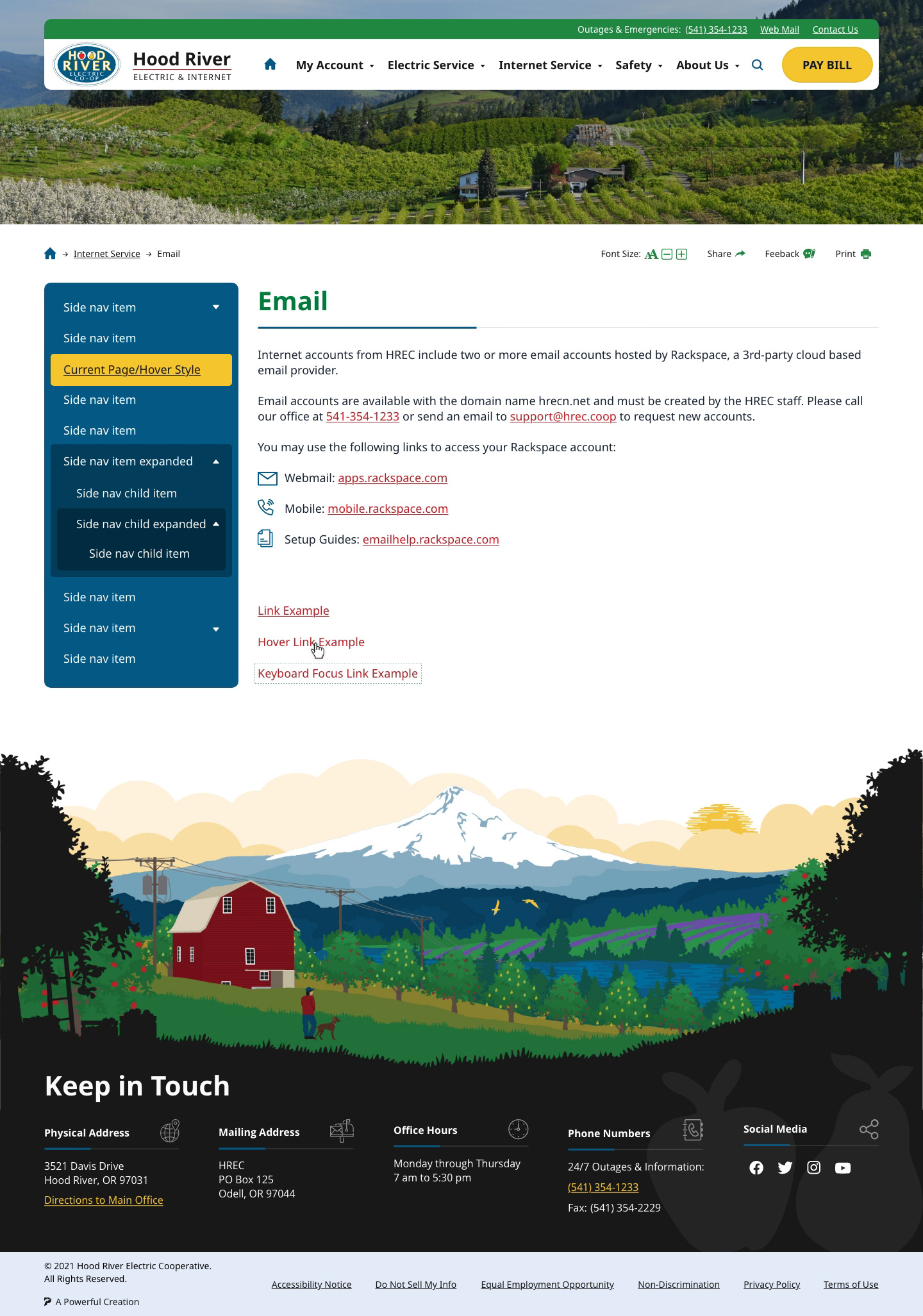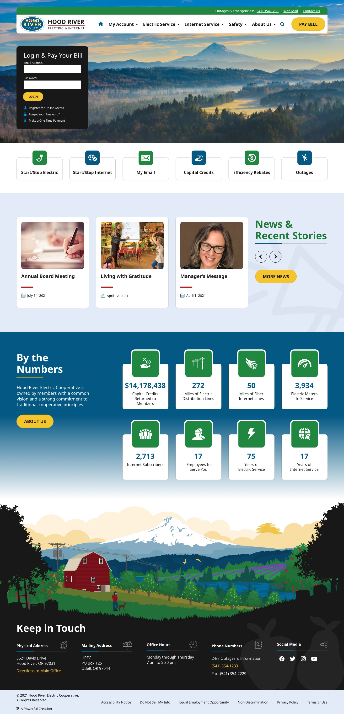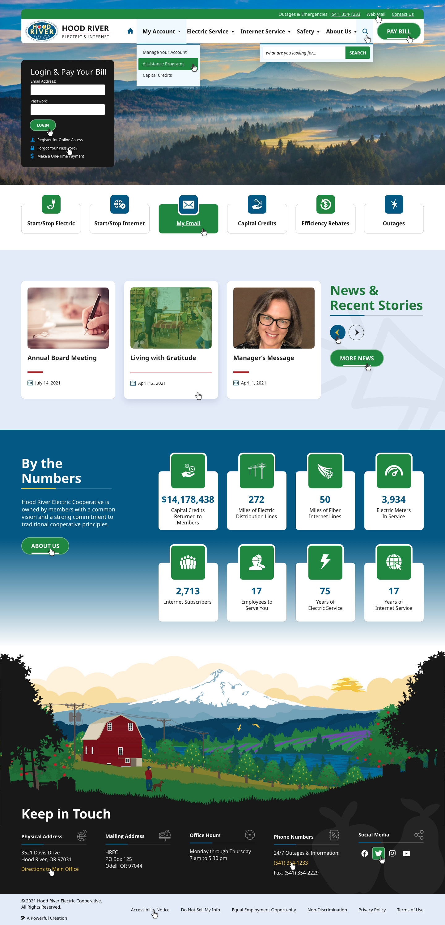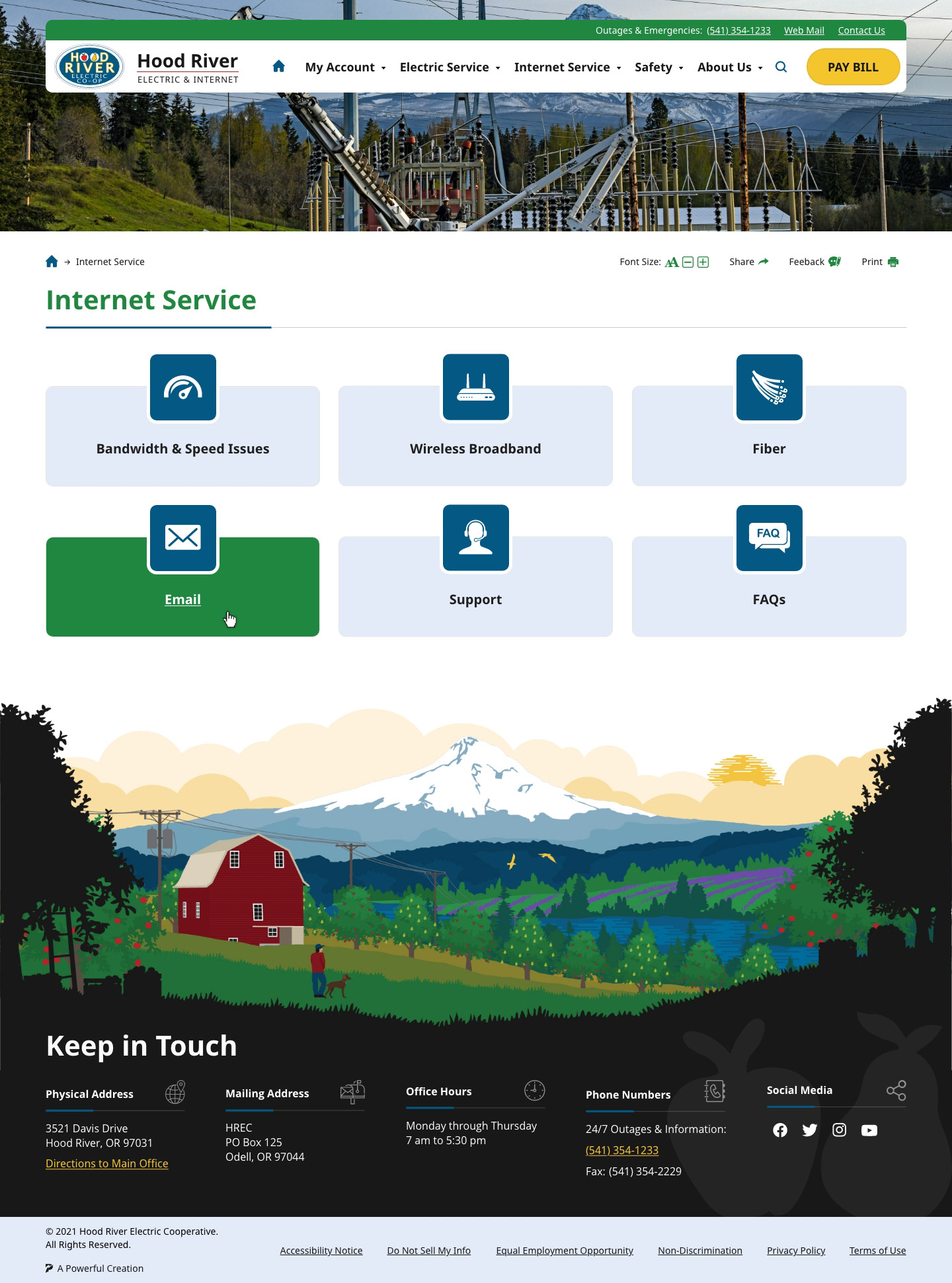 This project was fun with all of the different elements and colors. The technical challenges were ensuring it was ADA compliant, easy to navigate, reduced phone calls and emails, and mobile responsiveness. The creative challenges were to follow their branding guidelines, have a modern feel, and capture their beautiful scenery and friendly community. When the new layout was presented, they loved it, especially the illustration.